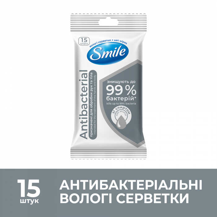 SMILE Серветка волога Antibacterial зі спиртом 15шт, арт. 42502576